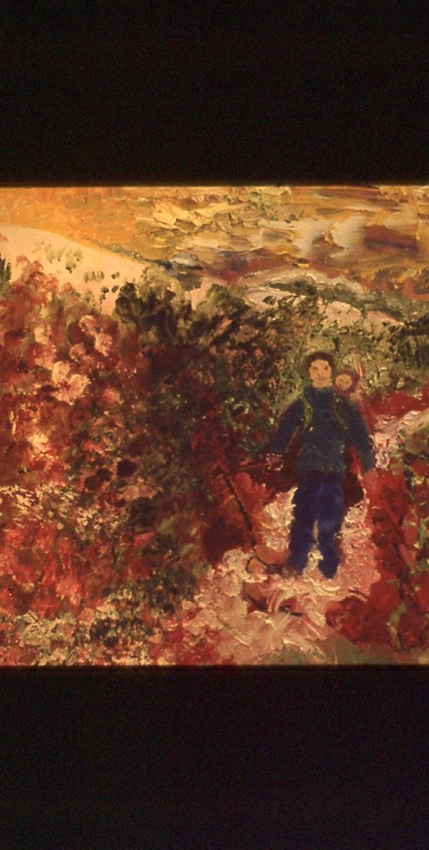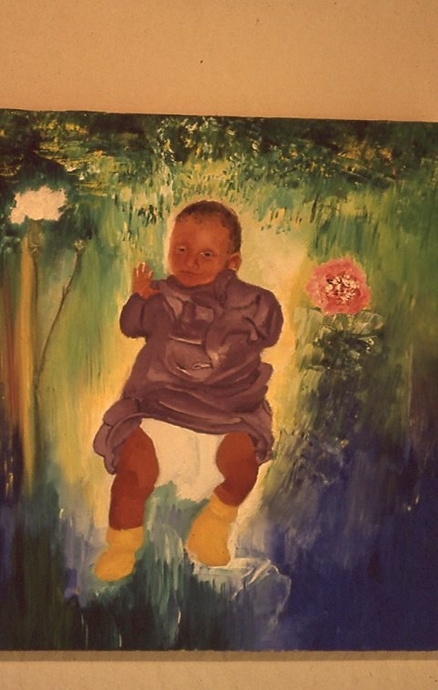 This was entitled by Mr. Stathis, Little Girl in Mediation. He painted it in shades of Pink and Alizarin Crimson from a picture he snapped of a little girl at a school he was volunteering at. Again, only a Xerox copy was to be found.