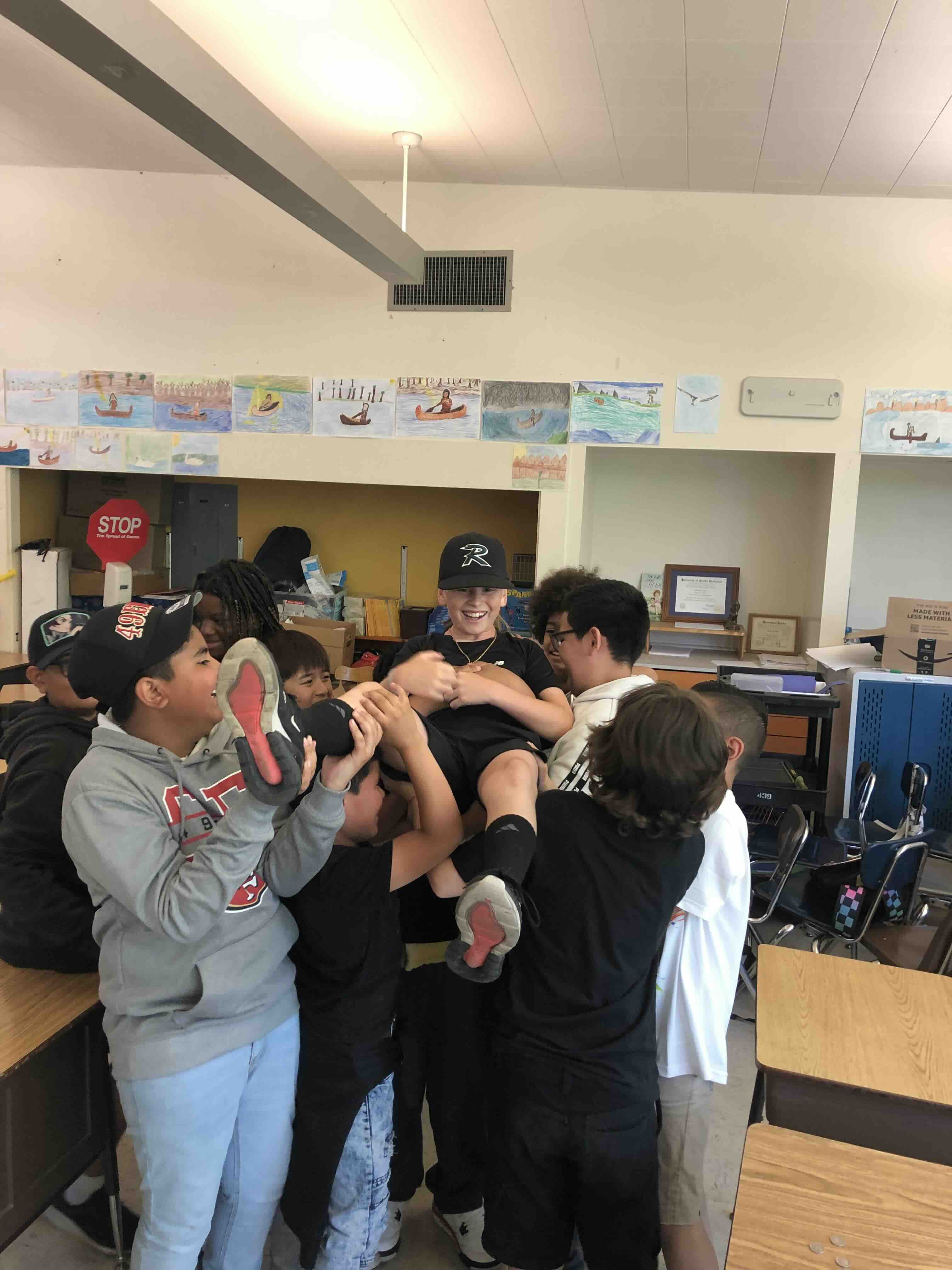 Picquetuing is a game invented a long time ago by Mr. Stathis and his brothers when they were young. It is a game played at which anyone can develop the skills necessary to be a Champion, or at least feel good enough to be able to win sometimes. Each game with a competitor goes rather quickly, and students keep a score of how many "wins" they acquire during the time allotted. Students "earn" the right to play on a Friday, by getting a 100% A+ on their Spelling Test on Thursday, and then play while the others, who didn't get 100%, have to retake the test on Friday. This creates an extra incentive to really "Strive for Excellence!"