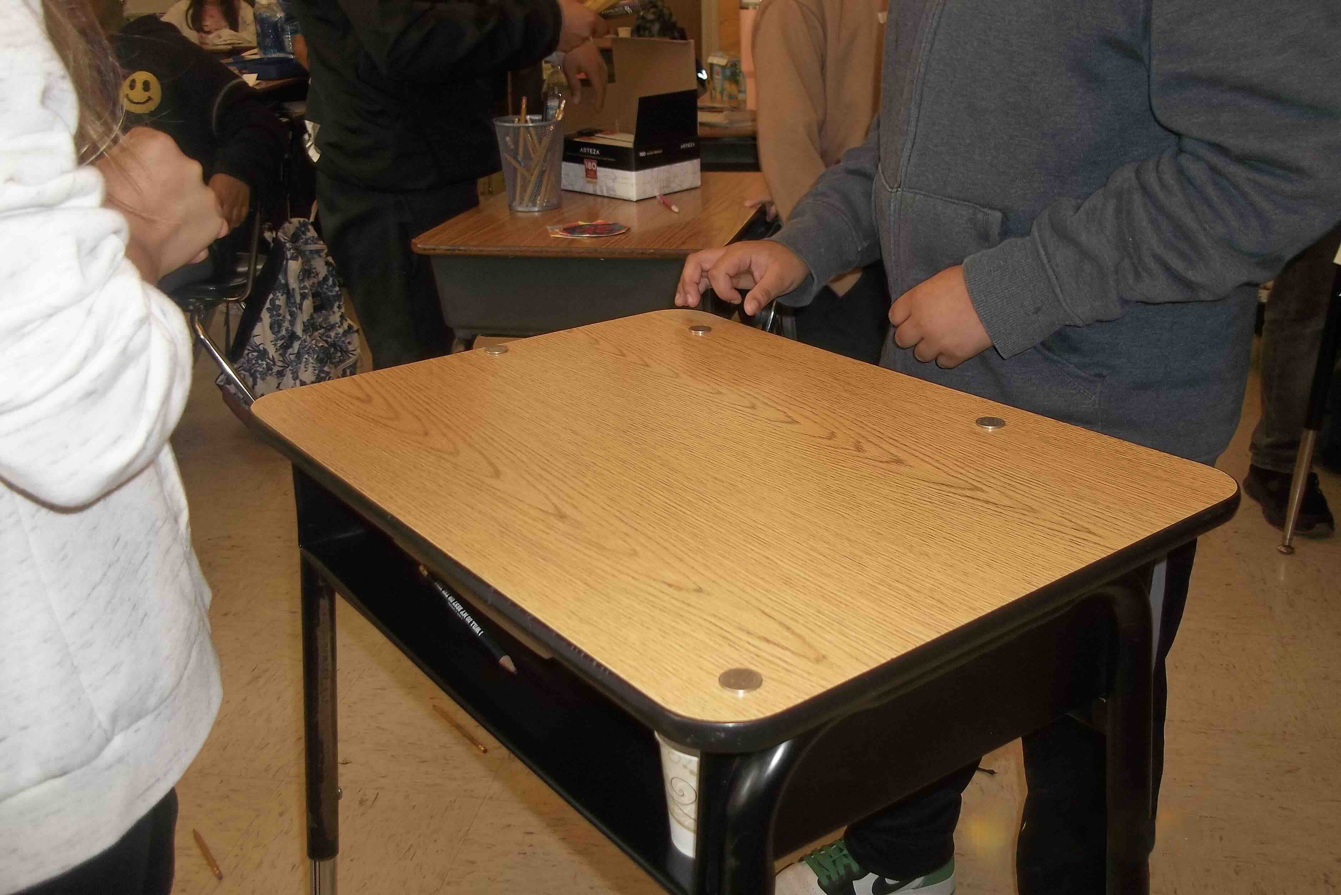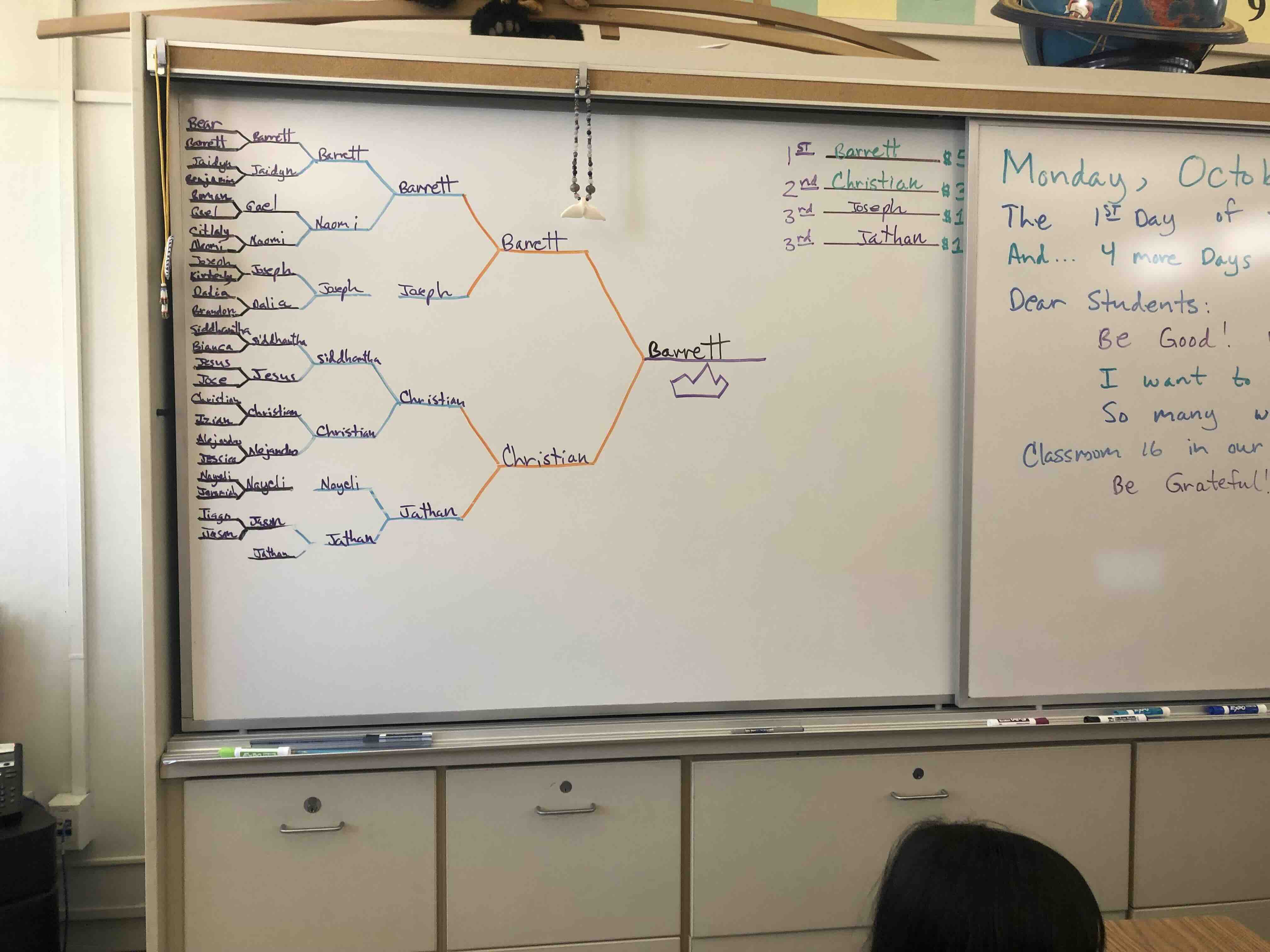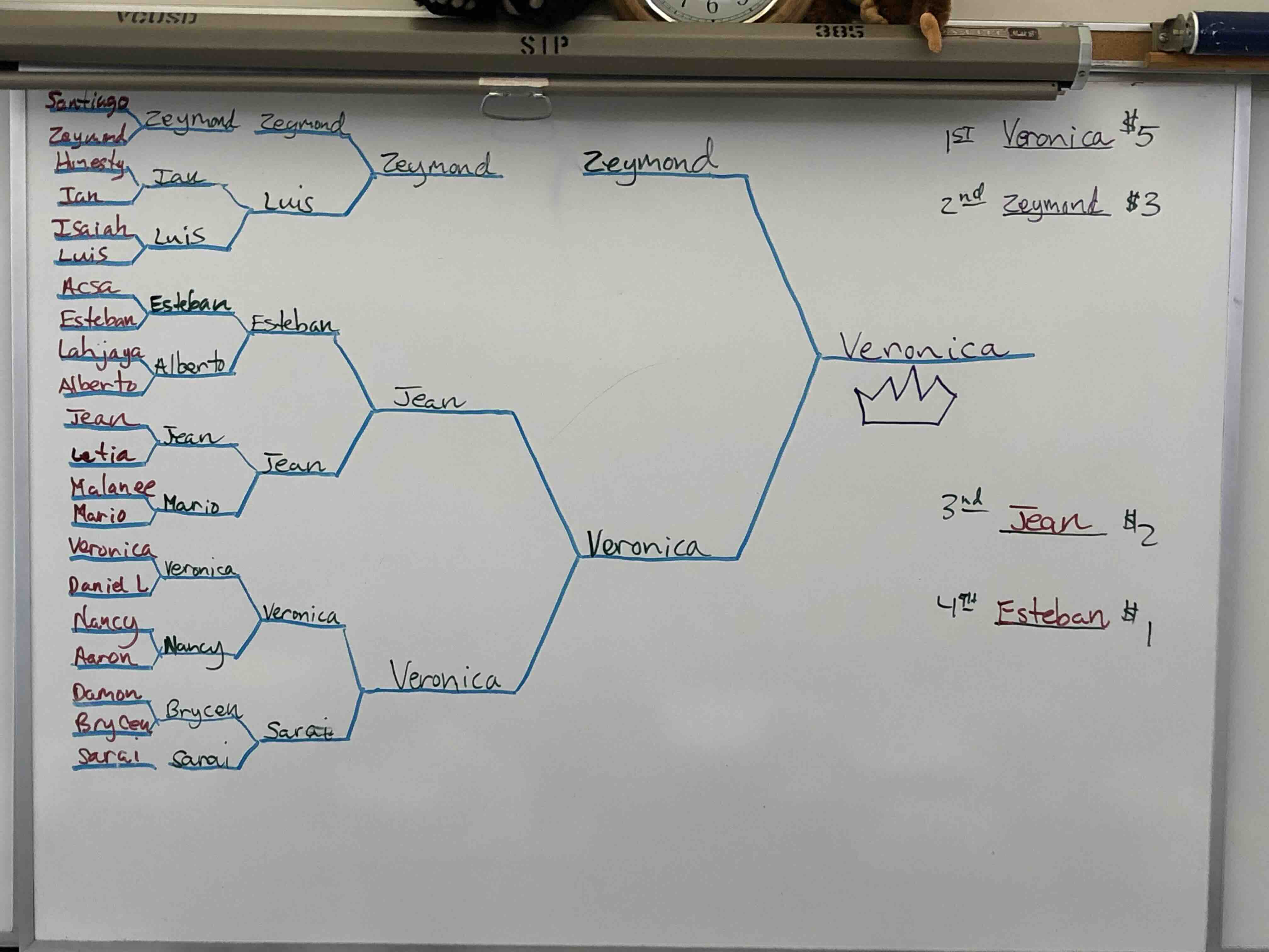 Every 6 or 7 weeks, as was said in the introduction a Bracket Tournament was made. Here, Santiago is playing Christian in the finals of the Bracket. For th FINAL, the desk is move to the center and everyone sits around to watch and honor the competitors!