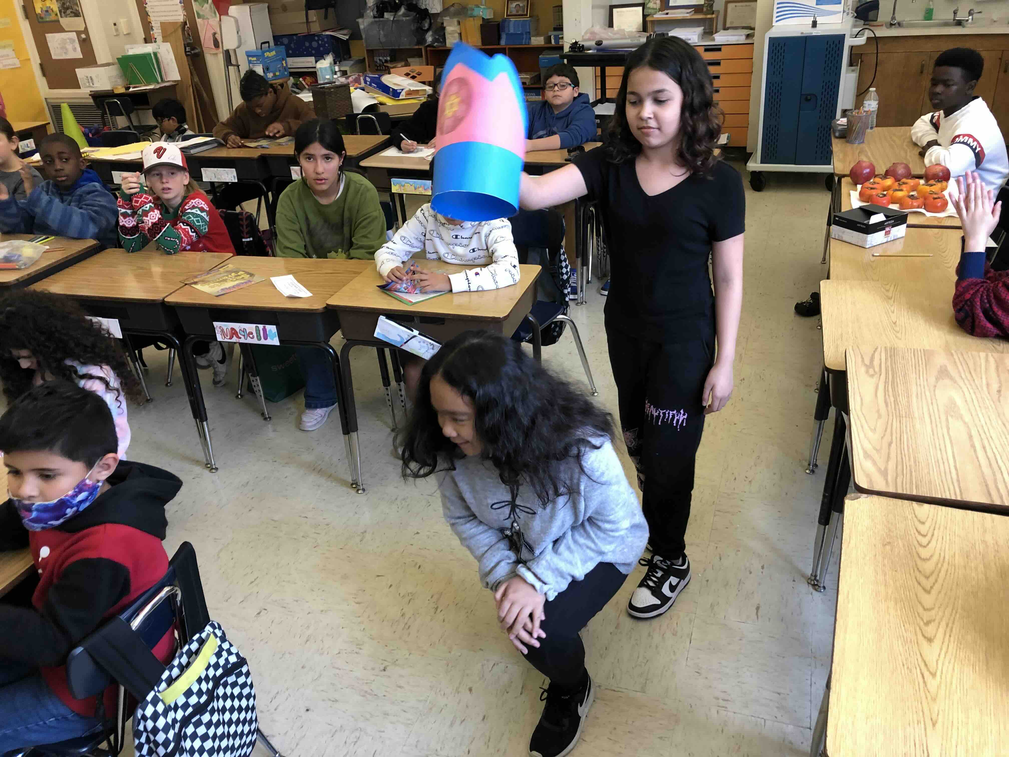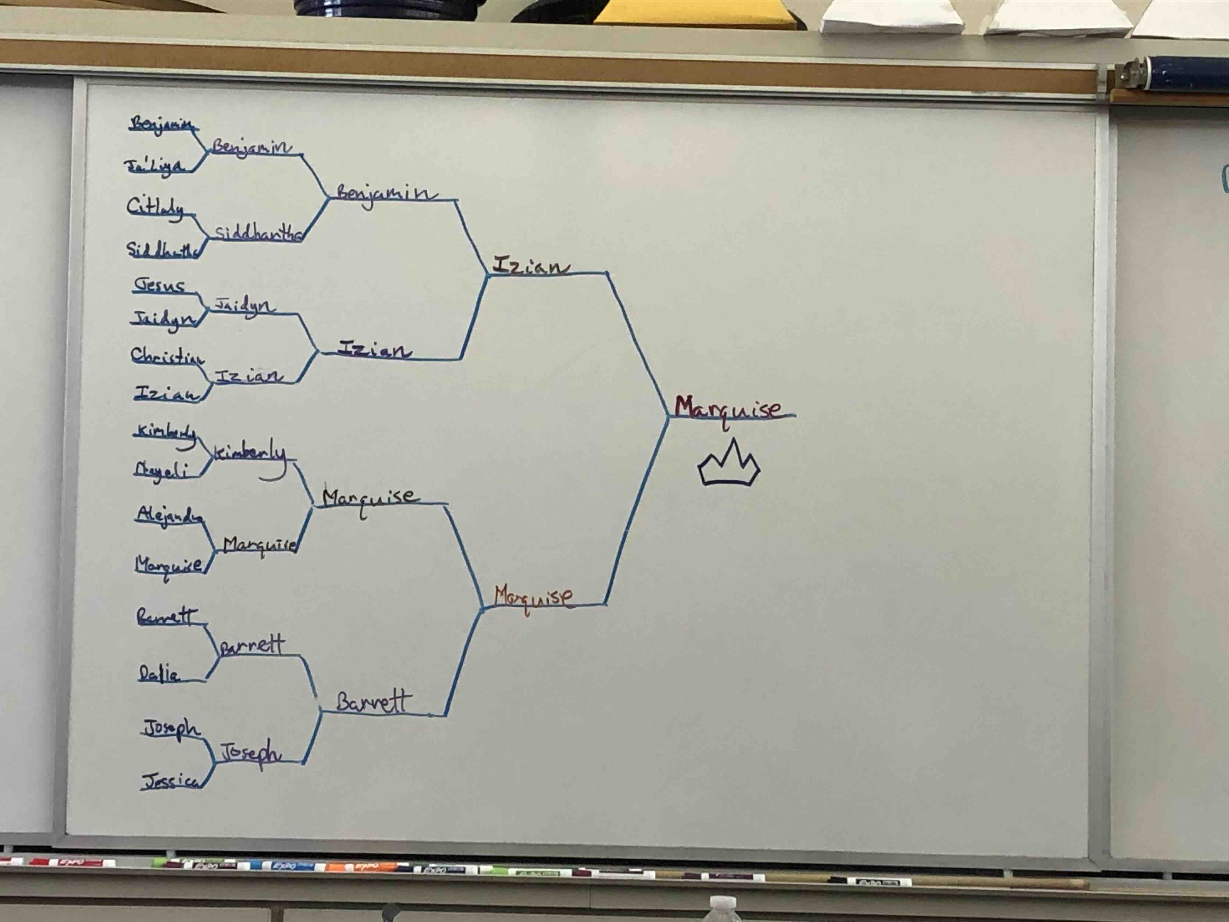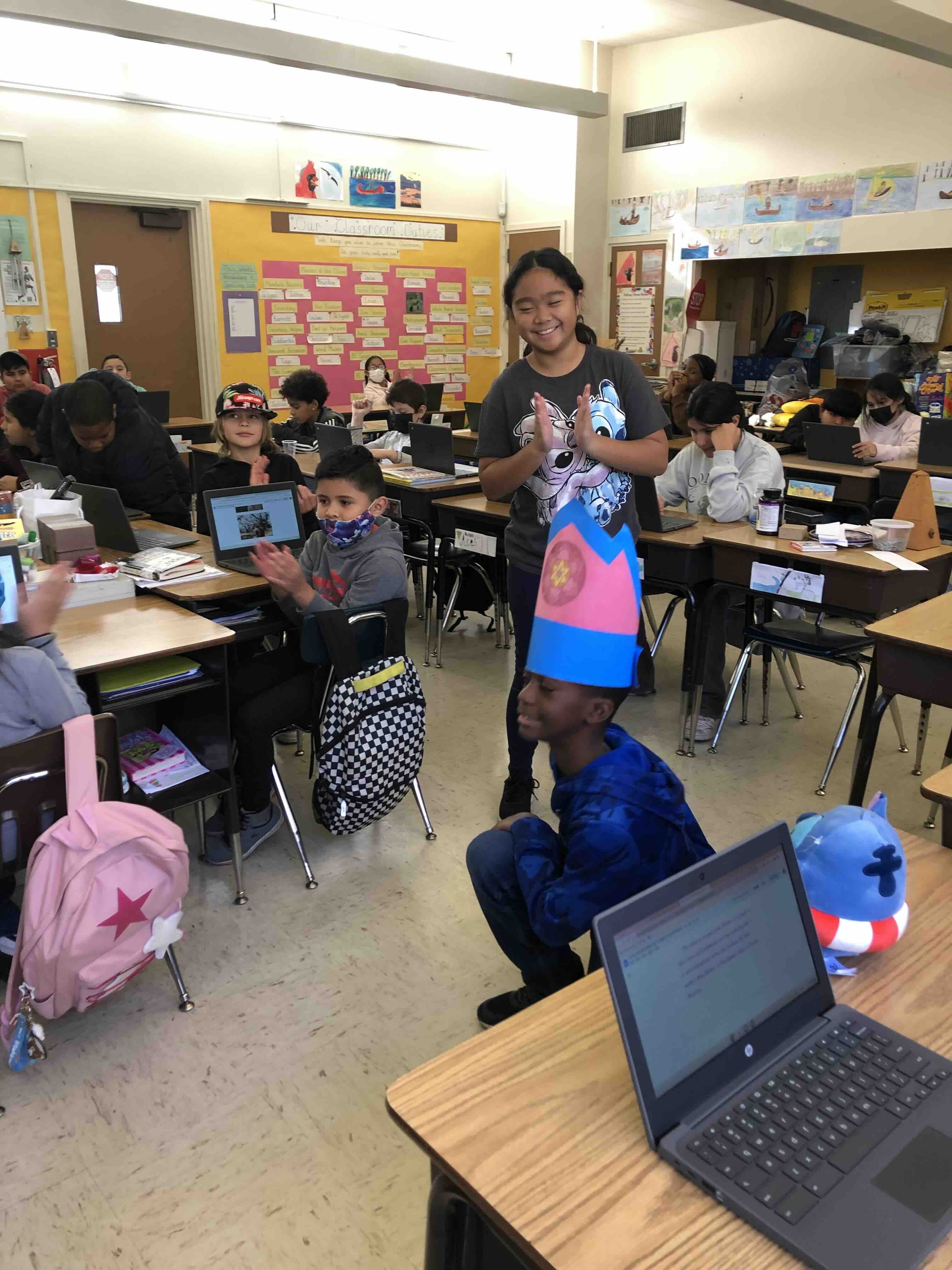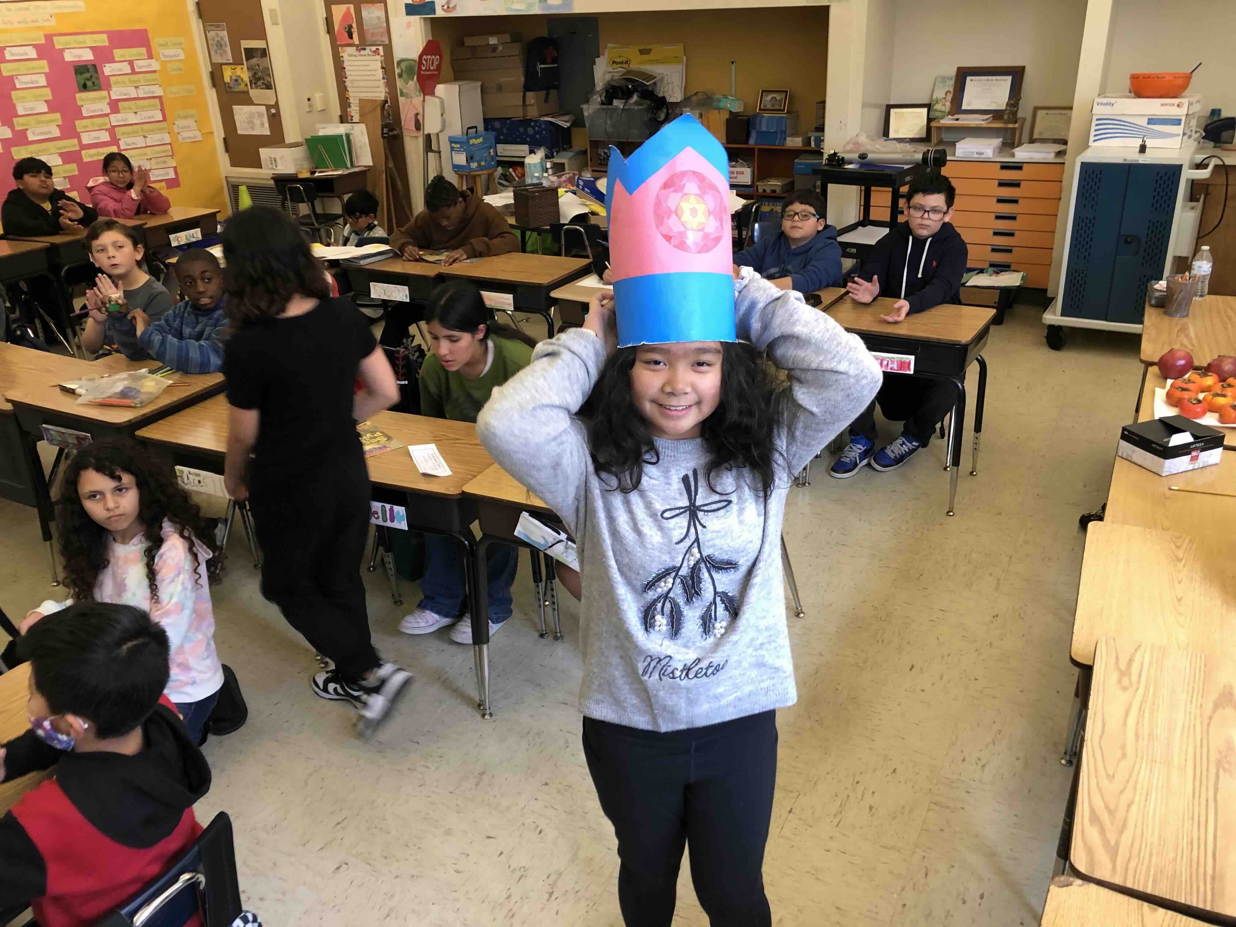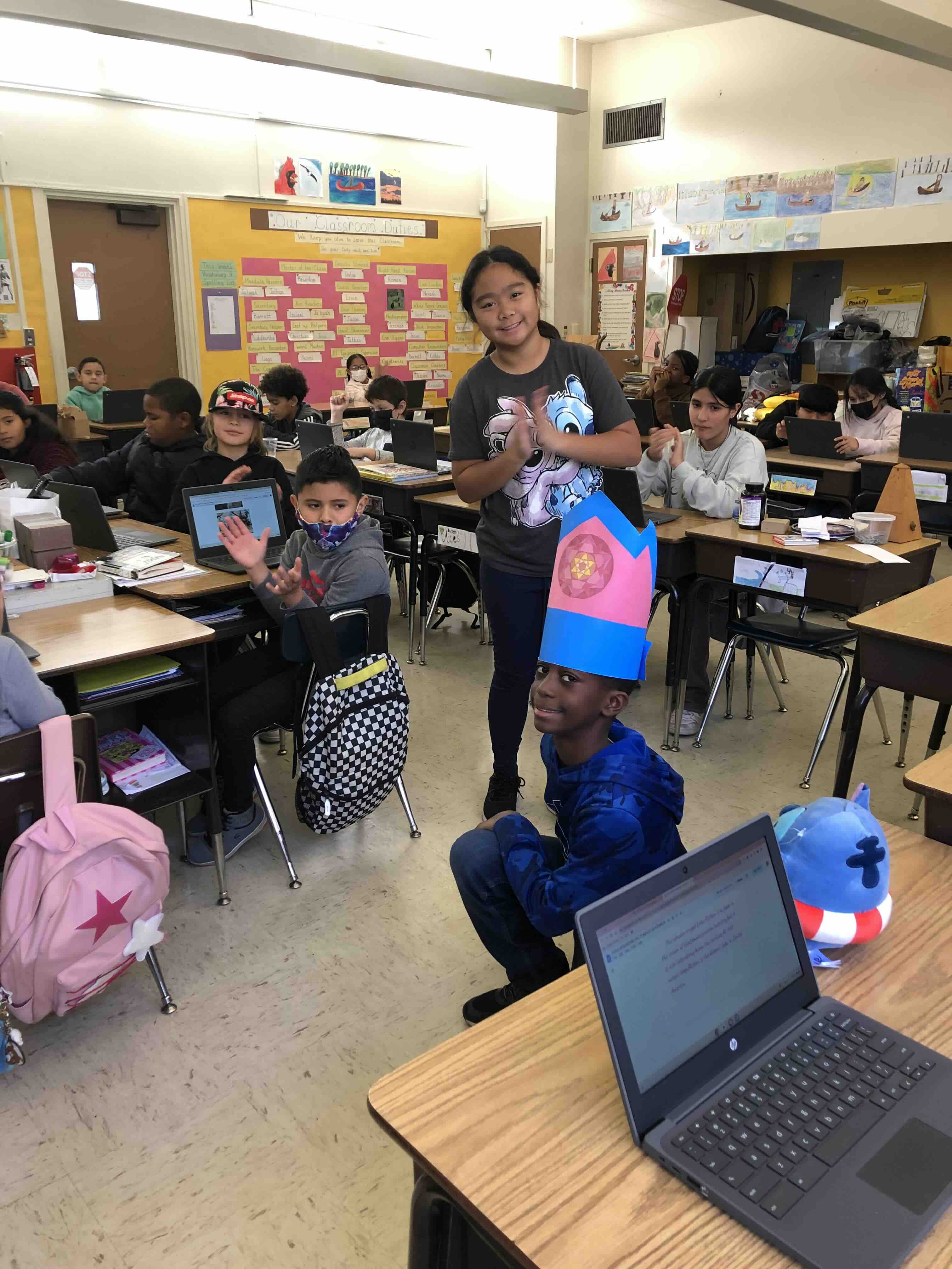 Here's how you "Win the Crown!" in Classroom 16: On the weekly championships, those who played on Friday because they got the 100% A+ on their Spelling Test on Thursday, played for points. The top 6 or 8 point-getters then play a mini-tournament. The winner of the Friday Tournament gets the Champion's Crown, the honor to keep and wear it the whole next week! Here Marquise was Champ!