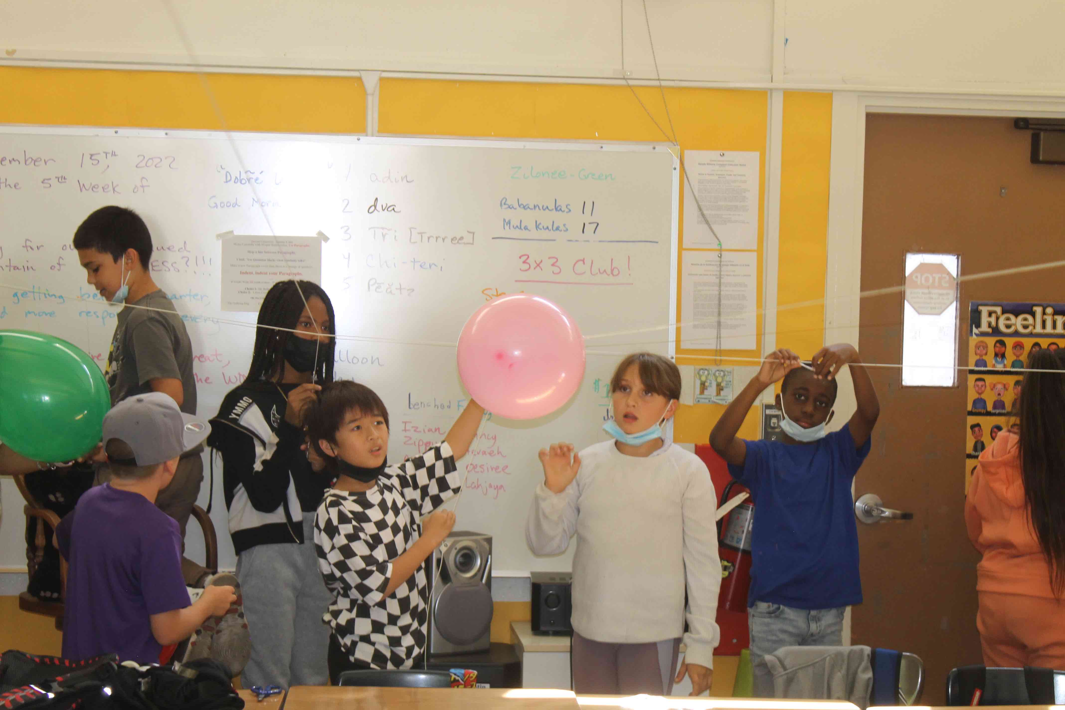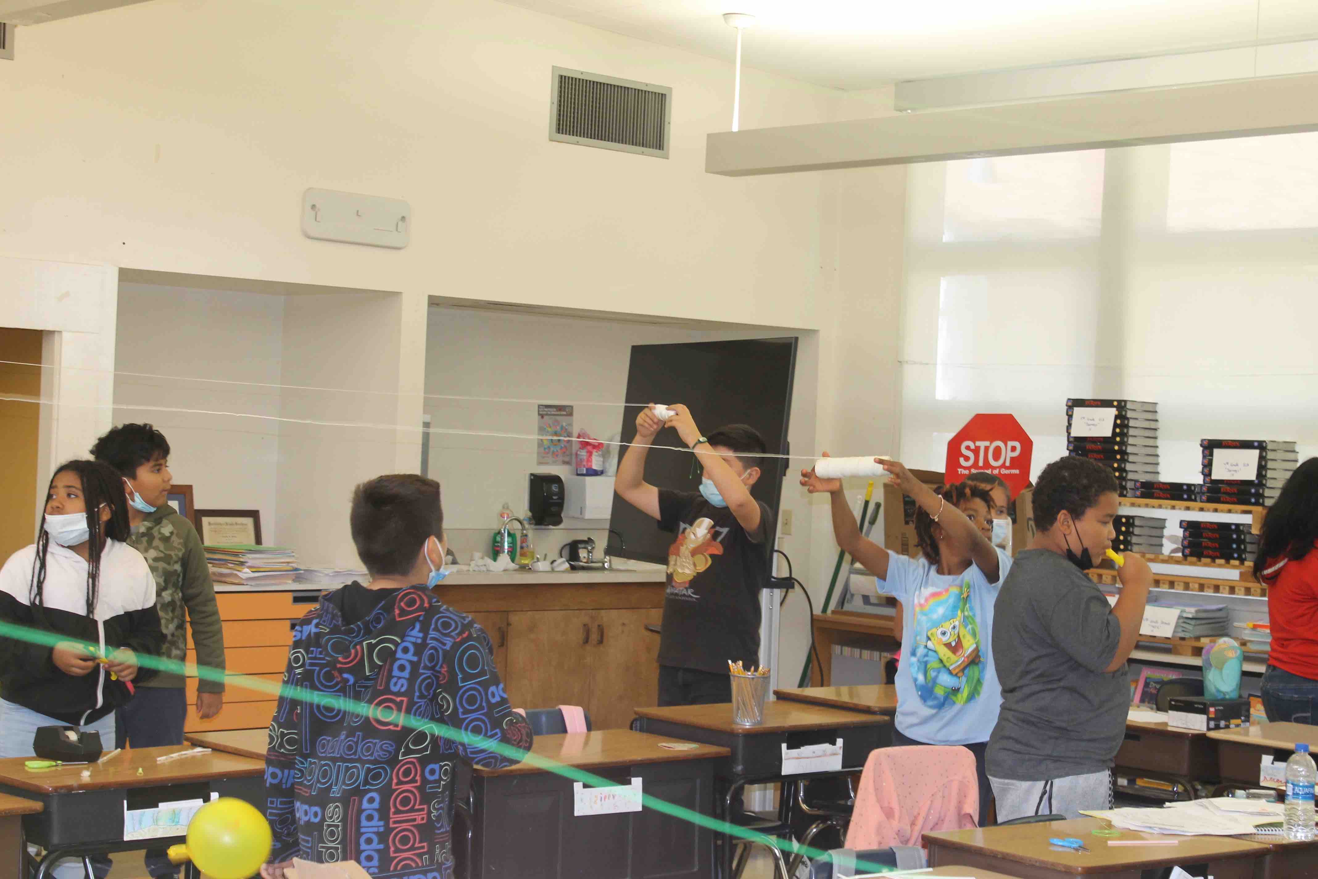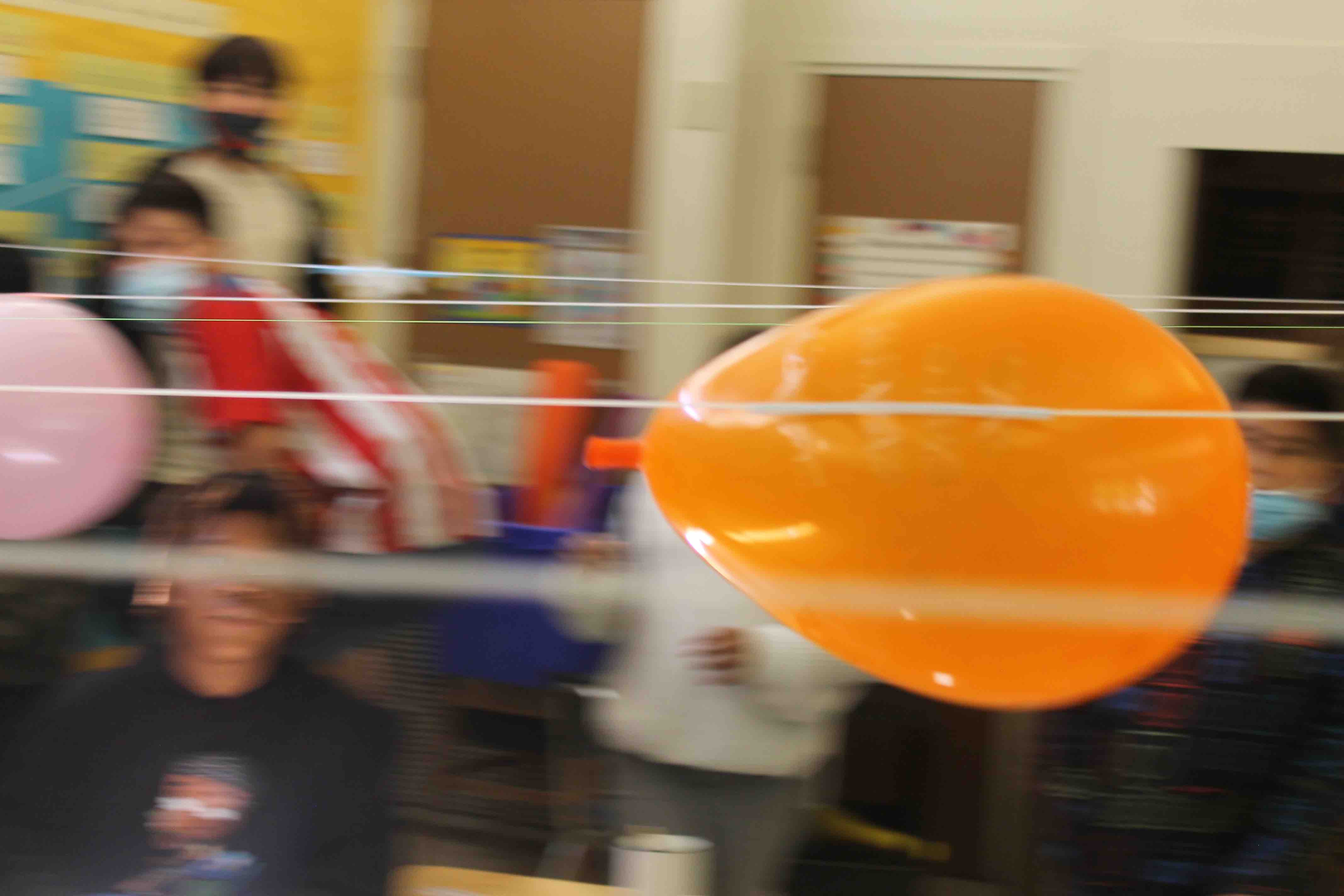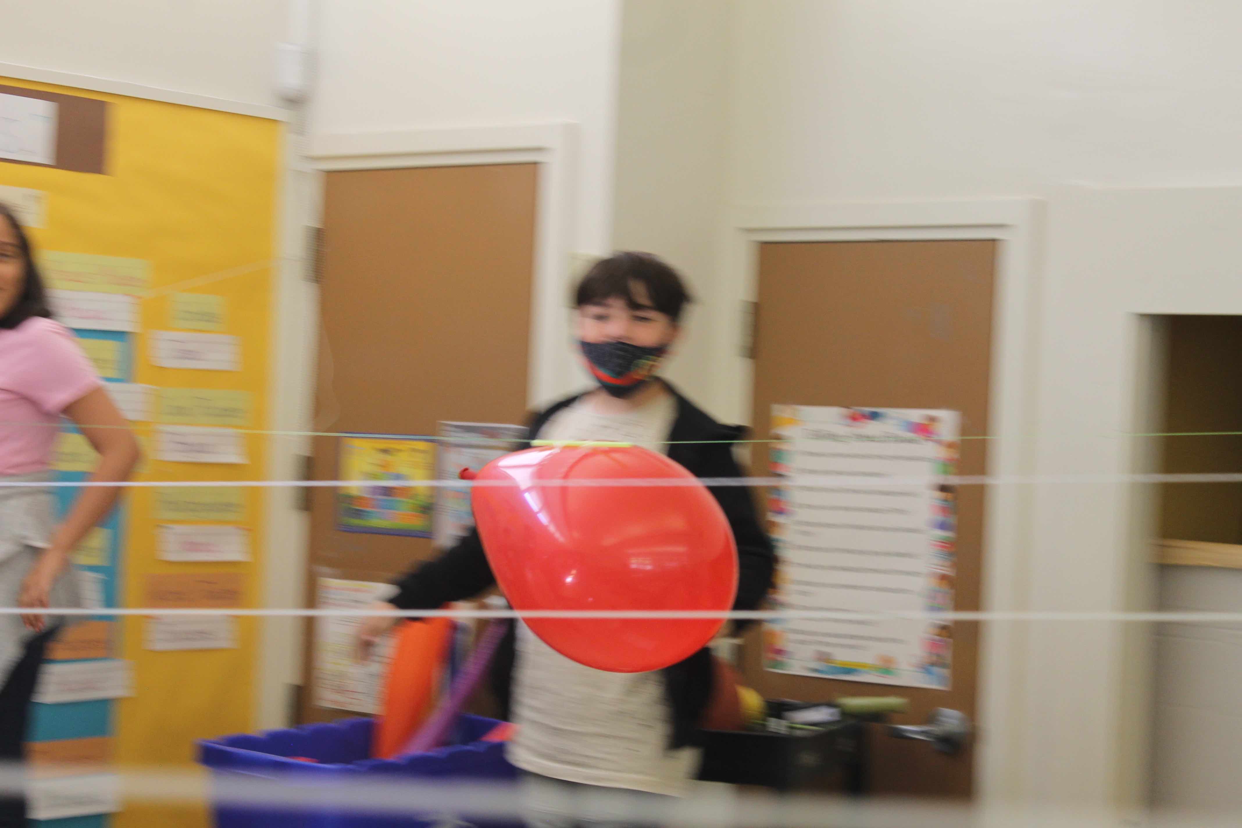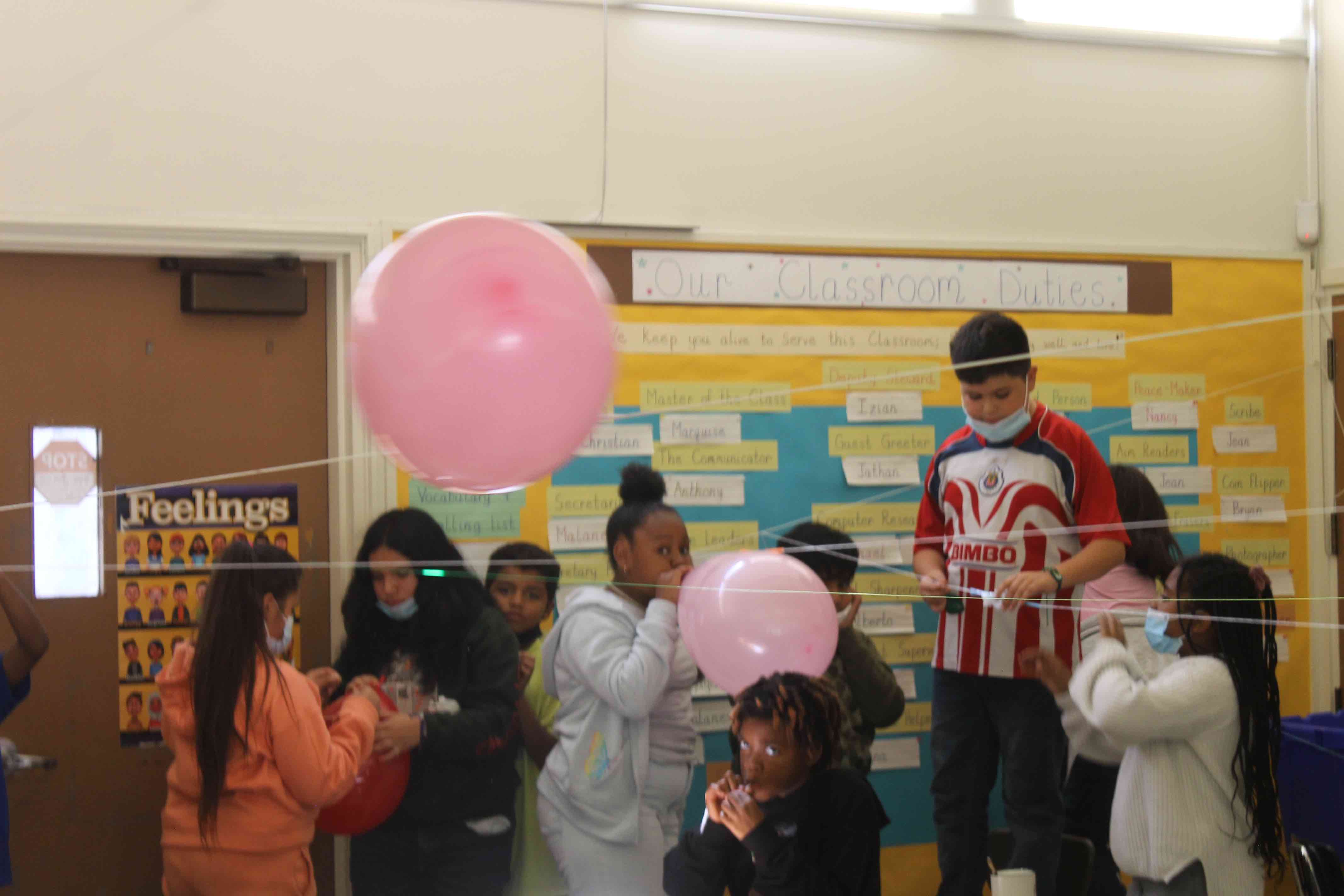 The students were given the initial task, the challenge, to see if they could fly the Balloon fully from one side of the classroom to the opposite wall.