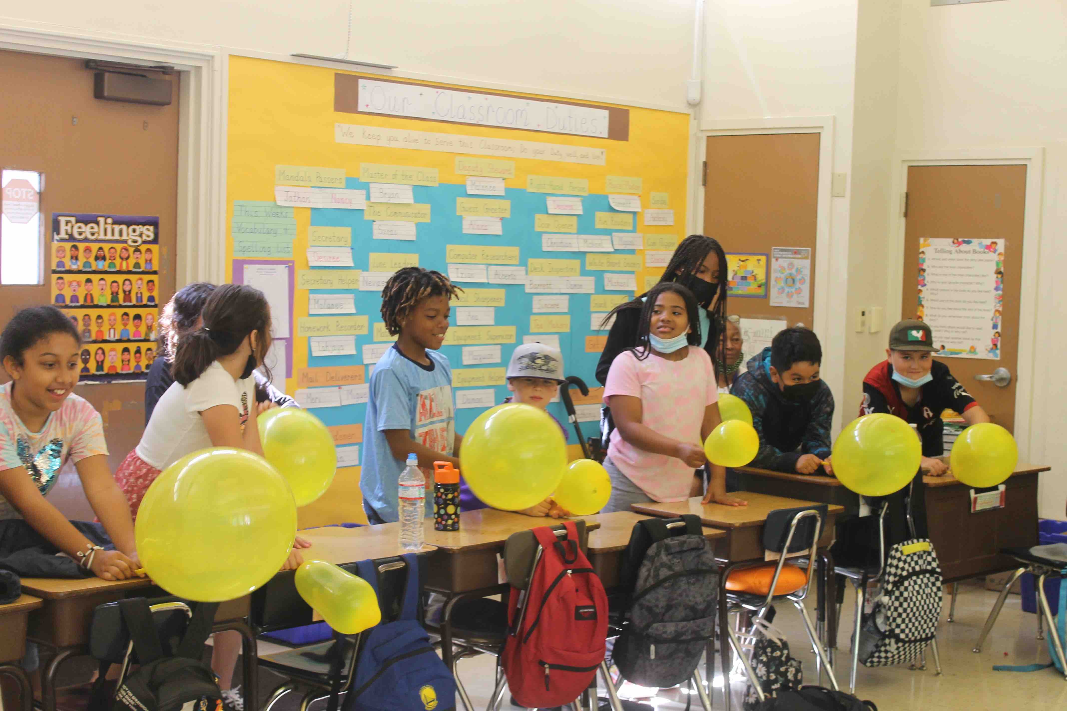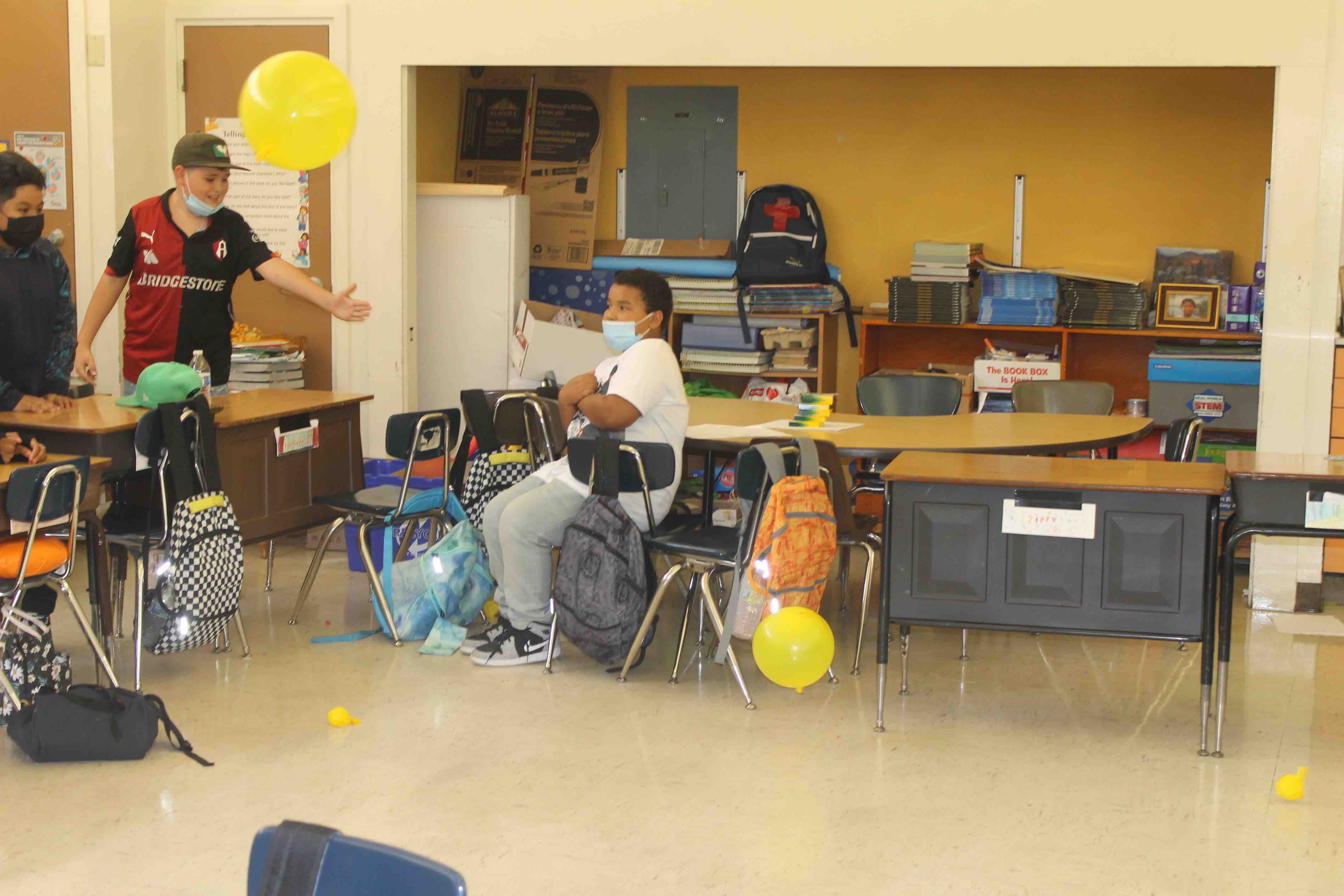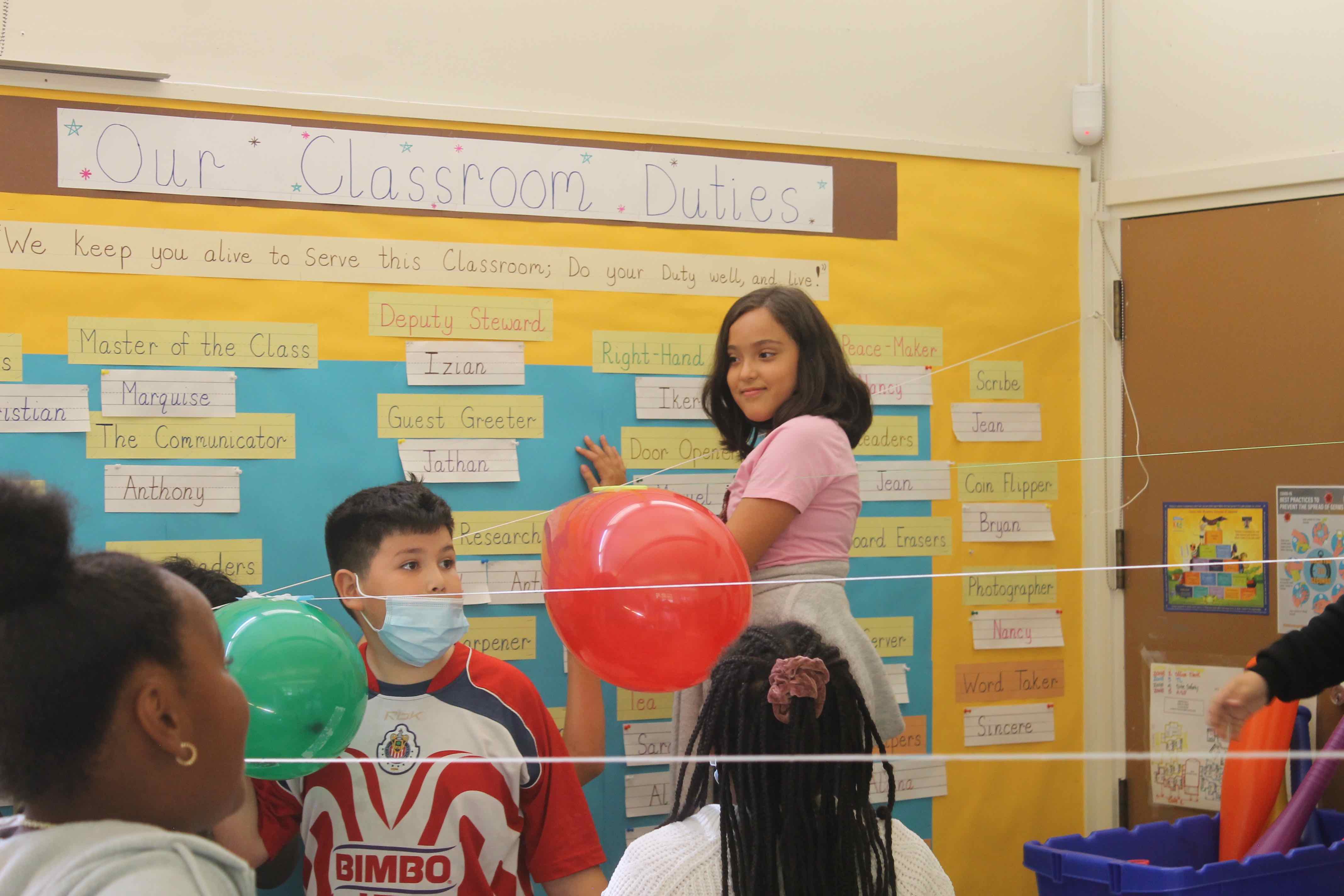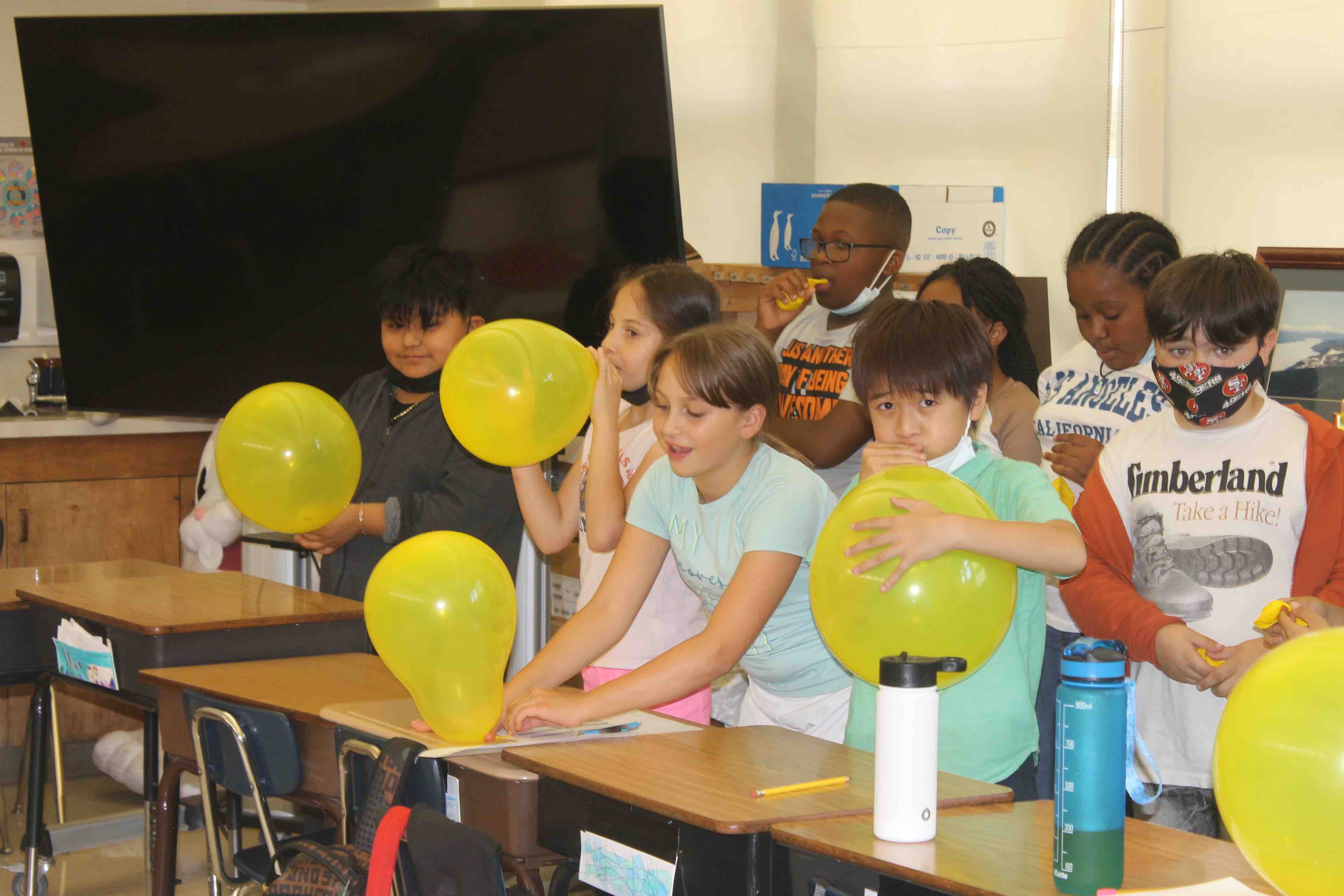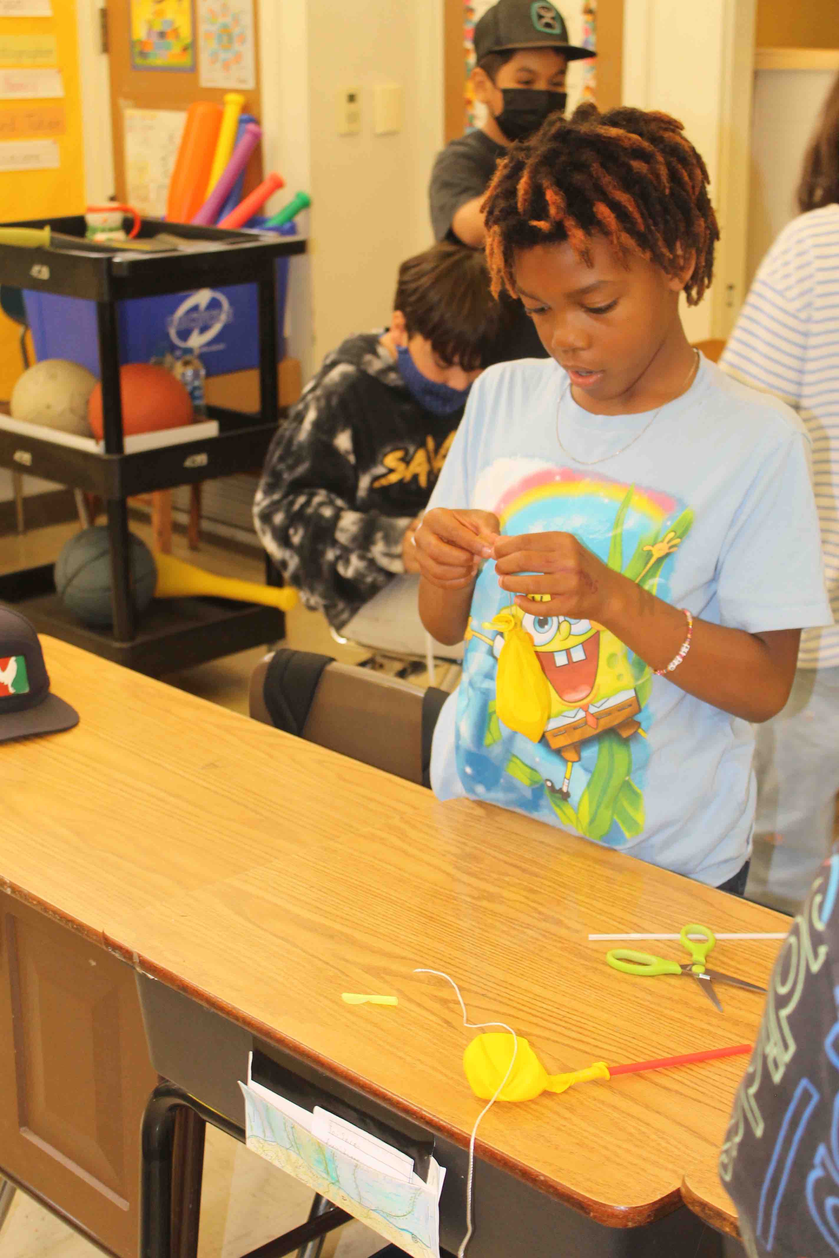 The students were given the initial task, the challenge, to see if they could fly the Balloon fully from one side of the classroom to the opposite wall.